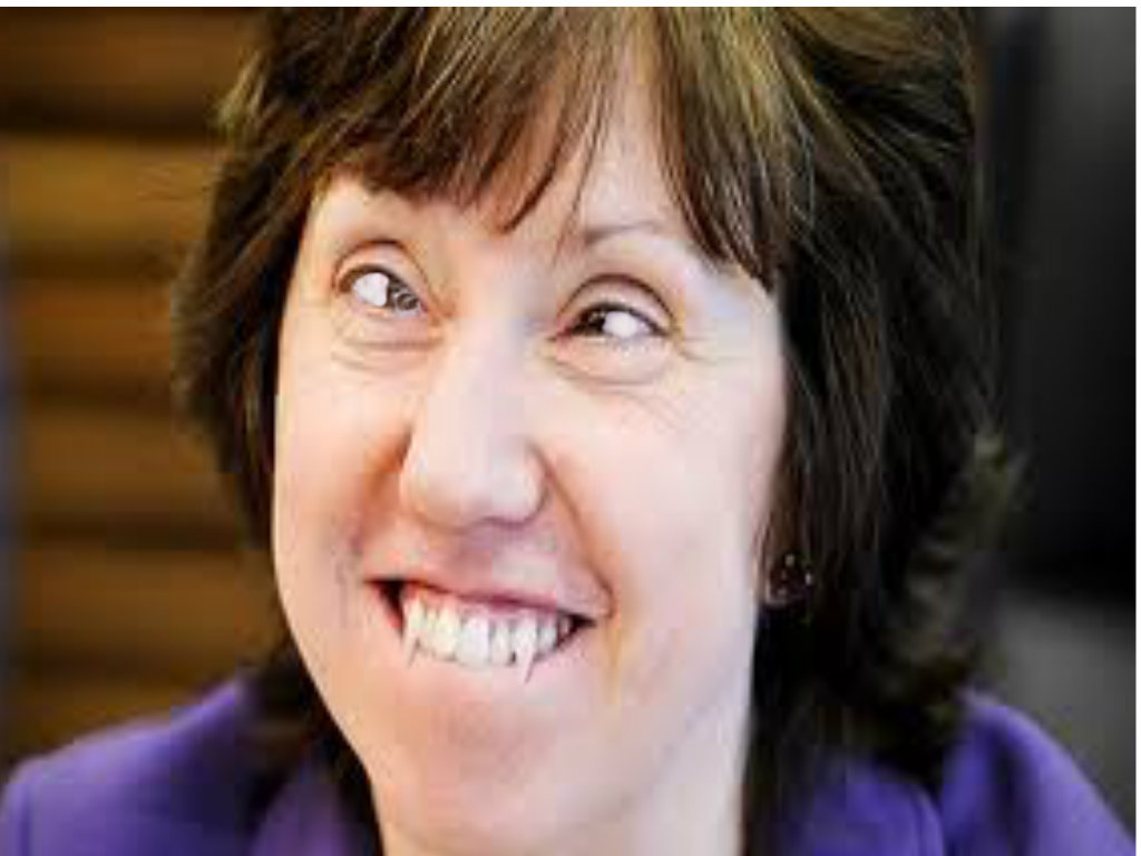 This grinning idiot is a Brit piss take of one of the EU's top jobs, playing second fiddle to Rumpy de Pumpy, our God Emperor. Her bombastic title aside from baroness, is High Representative for Foreign Affairs and Security Policy.' The Mikado, is certainly way beyond her abilities other than her mouth, intellectually and otherwise.Like a lot of those in British public life, the baroness has never, in her entire life, been elected to any public office and she never served as a diplomat.