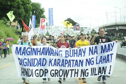 Filipino workers challenge to Aquino’s SONA: Address inequalityThree years ago, President Aquino promised to substantially reduce poverty, create quality and secure jobs, and end the reign of impunity, among others. He promised “inclusive growth”. Workers have had enough of these broken promises.