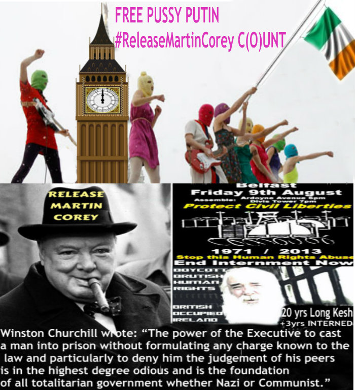 Free Pussy Putin Release Martin Corey Counts When the human rights marchers pushed their way through the PSNI roadblock, they left the massed riot paramilitary police, with no choice but to clear a route for the protesters, to march through Carrick Hill, before joining with an anti-internment contingent waiting the arrival of comrades at Divis Street. Despite considerable delay, the people of West Belfast lined the march route cheering up to 10,000 anti-internment marchers, making a nonsense of counter revolutionary, press statements and disinformation earlier in the day, bizarrely condemning the 10,000 strong human rights march, as a 'dissident' parade! The march which was lined with well-wishers all along the route, as it made it's way through West Belfast to the Busy Bee Centre, a traditional rallying point for Republicans, where speeches were given by well known human rights figures.