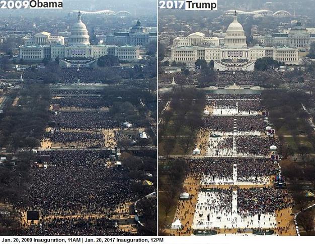 He eventually returned to the issue of media coverage of his inauguration and said the National Mall, divided up into sections for Friday's ceremony, was uniformly crammed with people.