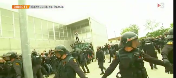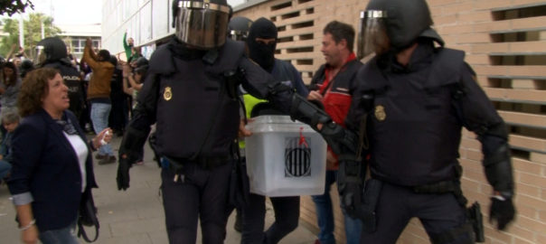 Spanish police take ballot papers by force and of course the votes cast within this morning -