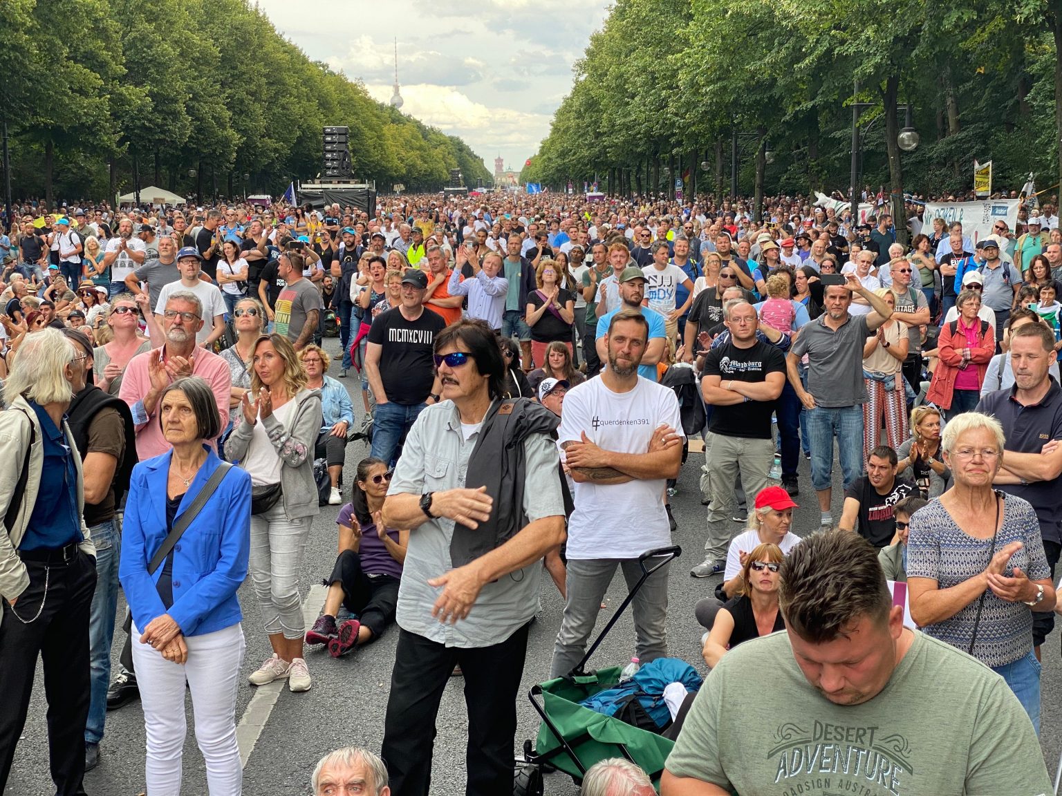 Then, in a particularly Orwellian twist, although the protest itself had now been banned, the Berlin government decided to approve a “counter-protest” against the banned protest. I’m not quite sure how that was supposed to work. The night before the demo, an administrative court overturned the protest ban. It didn’t really matter, as the authorities knew they couldn’t stop the demo in any event. Banning the protest was just part of the show (and the Gleichschaltung process the show was part of), meant to emphasize the existential threat posed by the bloodthirsty Nazi legion that was on its way to sack the city. On Saturday, hundreds of thousands of protesters (the overwhelming majority of whom were not neo-Nazis, or Nazi-sympathizers, or any other kind of monsters) poured into the streets of central Berlin. The police surrounded them, trapping them on the avenues, closed off the side streets so they couldn’t get out, and, once again, tried to ban the protest on the grounds that they weren’t “social distancing.” Everyone sat down in the street. Cops stalked around in their masks and body armor, sweating heavily, and occasionally pushing people. Lawyers made phone calls. It was very hot. This went on for quite a while. Eventually, the court instructed the police to let the demonstration go ahead. And the rest is history … except that it isn’t. According to the official narrative, there were no hundreds of thousands of protesters. There were “tens of thousands,” and they were all “neo-Nazis,” and “Nazi-sympathizers,” and “Coronavirus deniers,” and “stark-raving mad conspiracy theorists.” (Full disclosure: I was there with them, and, yes, indeed, there were some neo-Nazis among the hundreds of thousands in the streets, but, just like at the August 1 protest, these far-right boneheads were a small minority and not at all welcomed by the majority of the participants, no more than the Trotskyists and anti-Semites were welcomed at the 2003 anti-war protests before the US invasion of Iraq, although, yes, they were definitely there.) In any event, hundreds of thousands of protesters made their way down Unter den Linden, through the iconic Brandenburg Gate, and onward to the main demonstration, filling the Straße des 17. Juni from the Brandenburg Gate to the Siegessäule. By now, I assume you’ve seen the pictures. Or maybe you haven’t. It’s actually fairly hard to find any photos in the media that give you any real perspective. And, finally, we have come to the main event … which, of course, was not this enormous gathering of totally non-violent, non-Nazi people peacefully protesting the New Normal totalitarianism, nor the speech of Robert F. Kennedy, Jr. No, the “story,” the official main event, was the “Storming of the Reichstag building by Nazis.” I’ll let Mathias Bröckers handle this part. Here’s an excerpt from his recent blog post:
