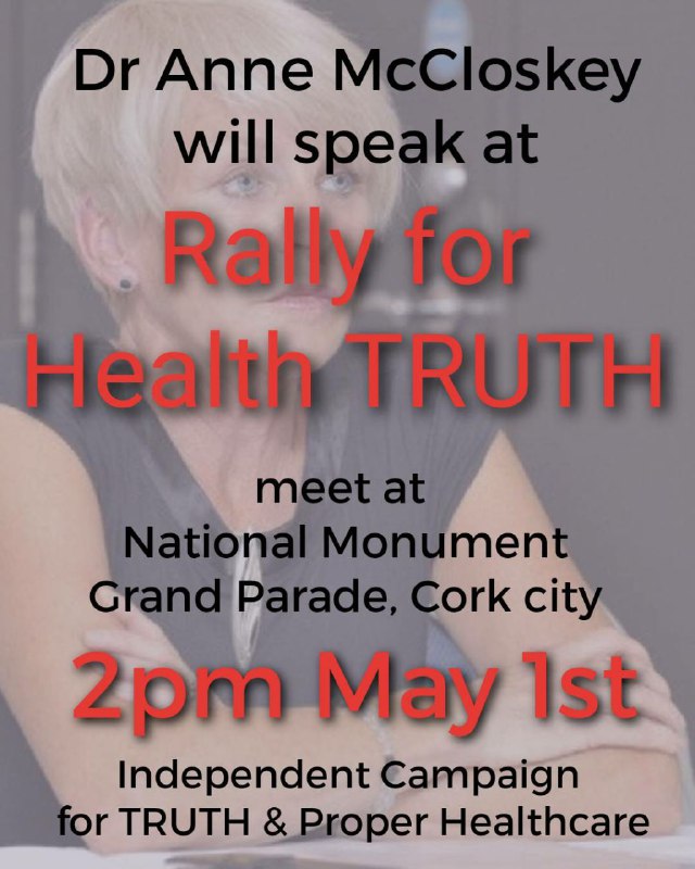 Rally for Health Truth on Sat May 1st @ 2pm National Monument, Cork