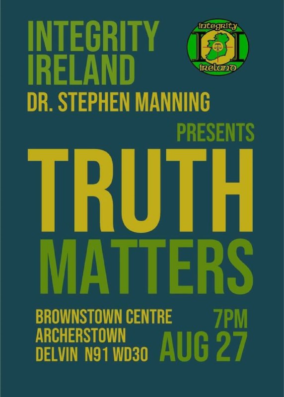 Integreity Ireland presents Truth Matters by Dr Stephen Manning - Sat 27th Aug @ 7pm