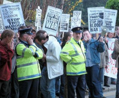 An anti-war protest took place this evening outside the constituency offices and home of Minister McDowell in Ranelagh this evening. McDowell who was due to give a clinic failed to run the gauntlet of protesters.