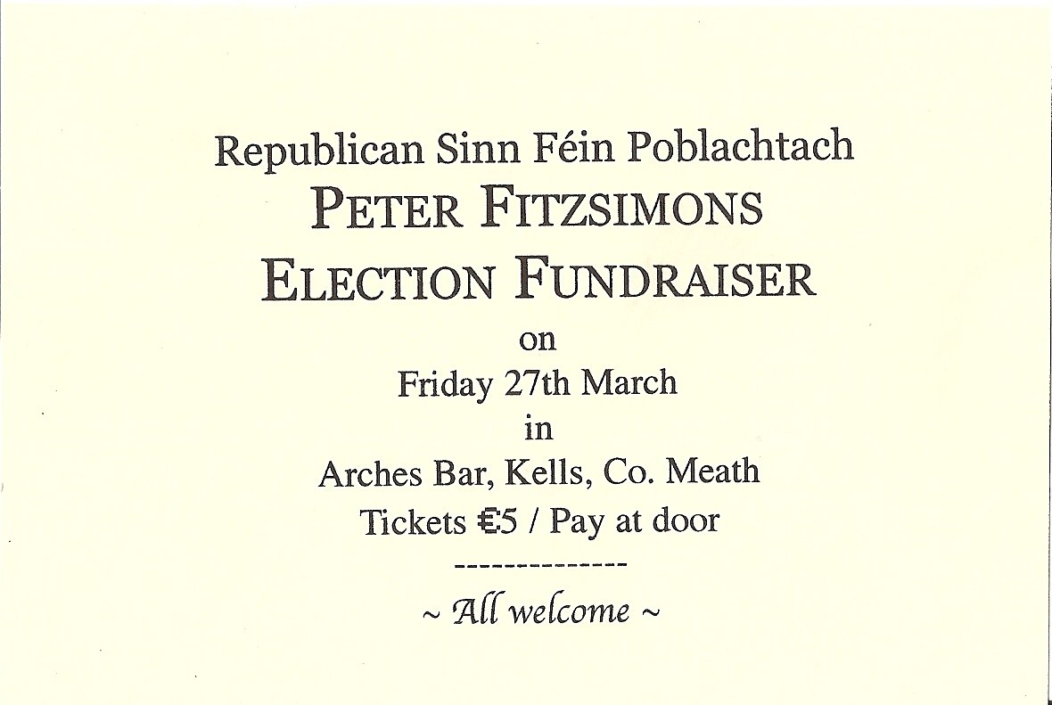 category meath | miscellaneous | event notice author Wednesday March 04, 2009 10:31author by Peter Fitzsimons Publicity Officer - Republican Sinn Féinauthor email peterfitzsimons2009 at hotmail dot com Report this post to the editors